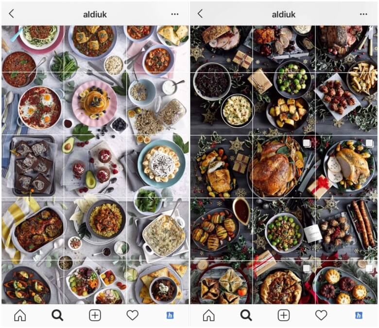 My favourite example of food photography composition on Instagram is Aldi’s UK account. I know it’s not a restaurant, but it’s absolutely fantastic:
